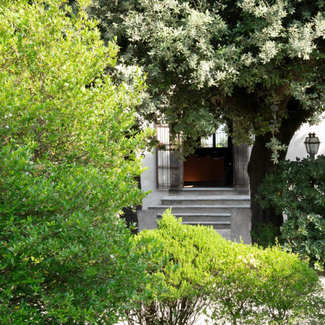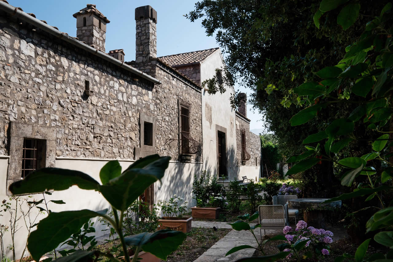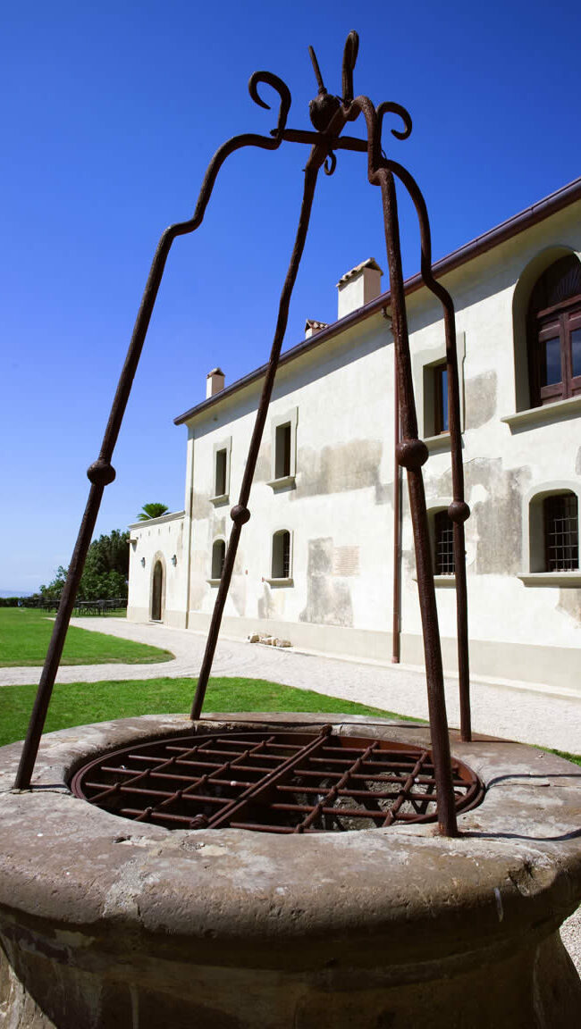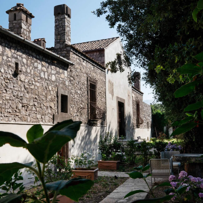 Nel restaurare gli edifici, particolare cura è stata posta nella preservazione delle preesistenze: vedrete così che la facciata principale della grande foresteria presenta degli inserti con l’intonaco originario che, dove è stato possibile, abbiamo conservato. Allo stesso modo, laddove si è dovuto intervenire ex novo, grande attenzione è stata data all’utilizzo di materiali naturali, grassello di calce, lapilli e pozzolana e pitture a calce.