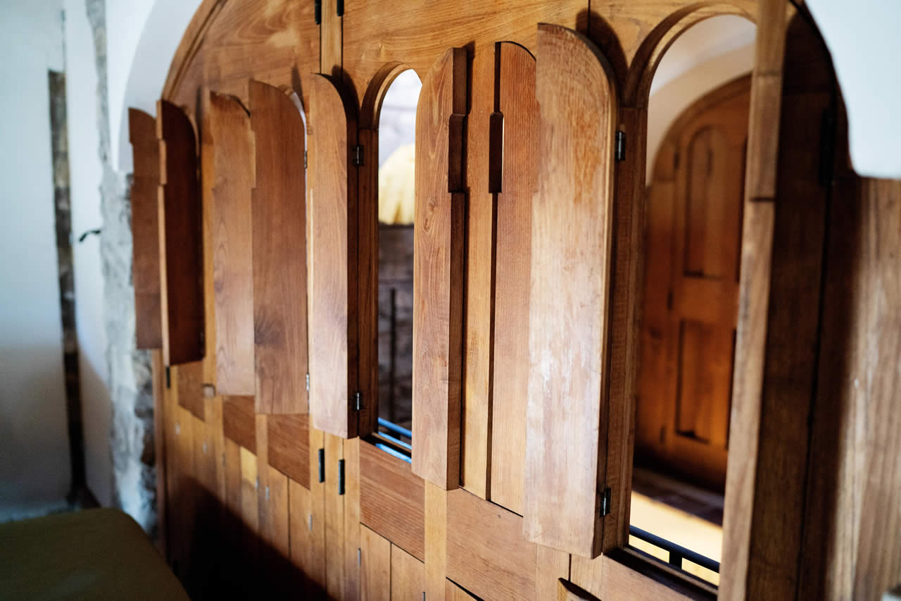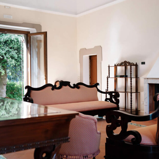 La nostra filosofia del recupero, in antitesi rispetto alla società consumistica di oggi, si legge anche nei mobili, oggetti e arredi che troverete nelle camere. Nella foresteria vi sono i mobili originari della famiglia, veri pezzi di antiquariato. Nelle camere delle cellette, potrete notare pure tanti mobili e ricordi di famiglia che sono stati accuratamente restaurati e ripristinati nel loro uso o riconvertiti a funzioni diverse da quelle originarie, come le antiche stampe fine ottocento e le cartoline souvenir inizi novecento che fanno bella mostra di sé, le cornici di mobili, ora scomparsi, usati a mo’ di sopra porta, un mobile reggifucili diventato un singolare portemanteaux, gli originari mobili lavabo ottocenteschi di nuovo in uso.