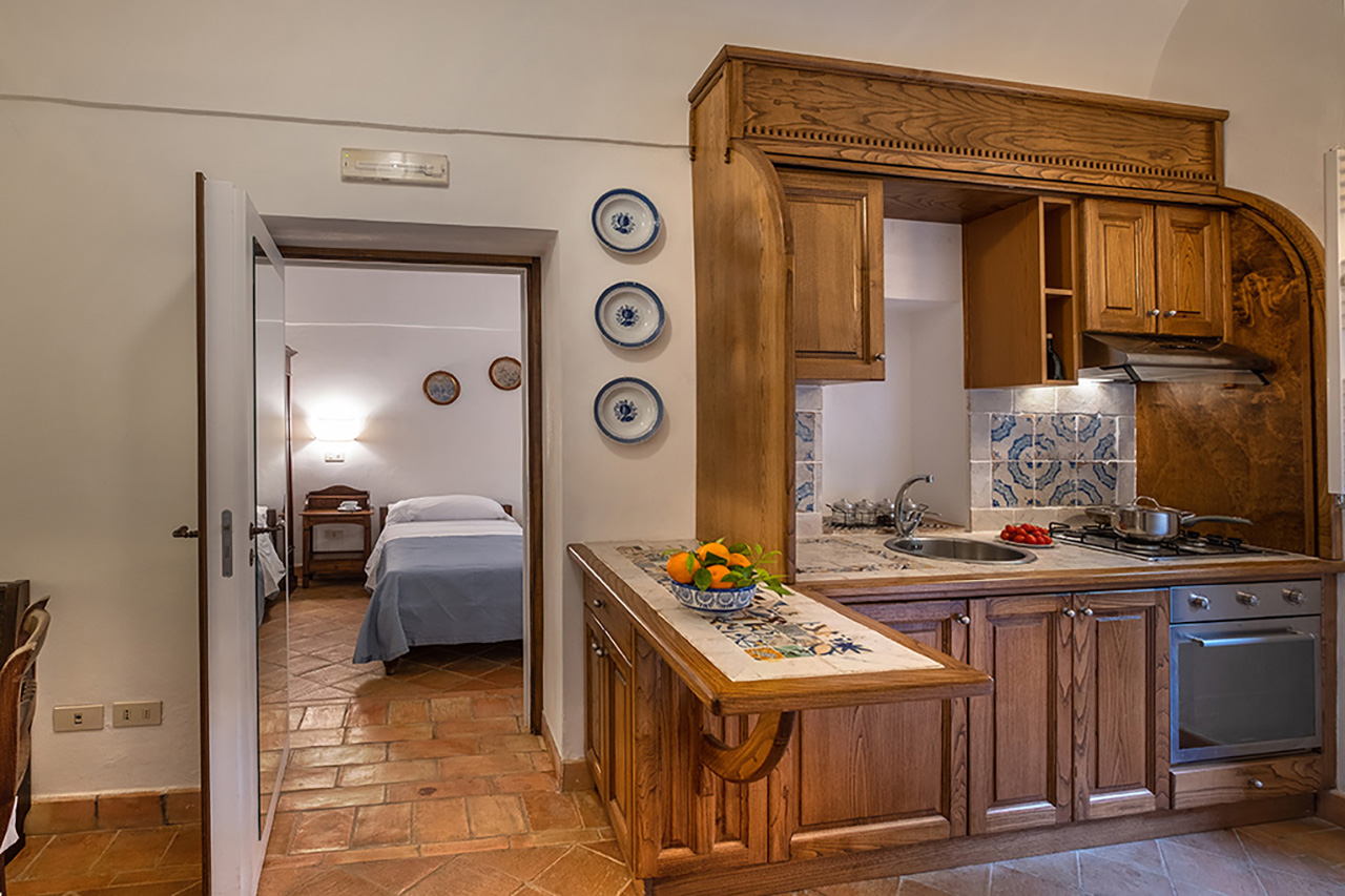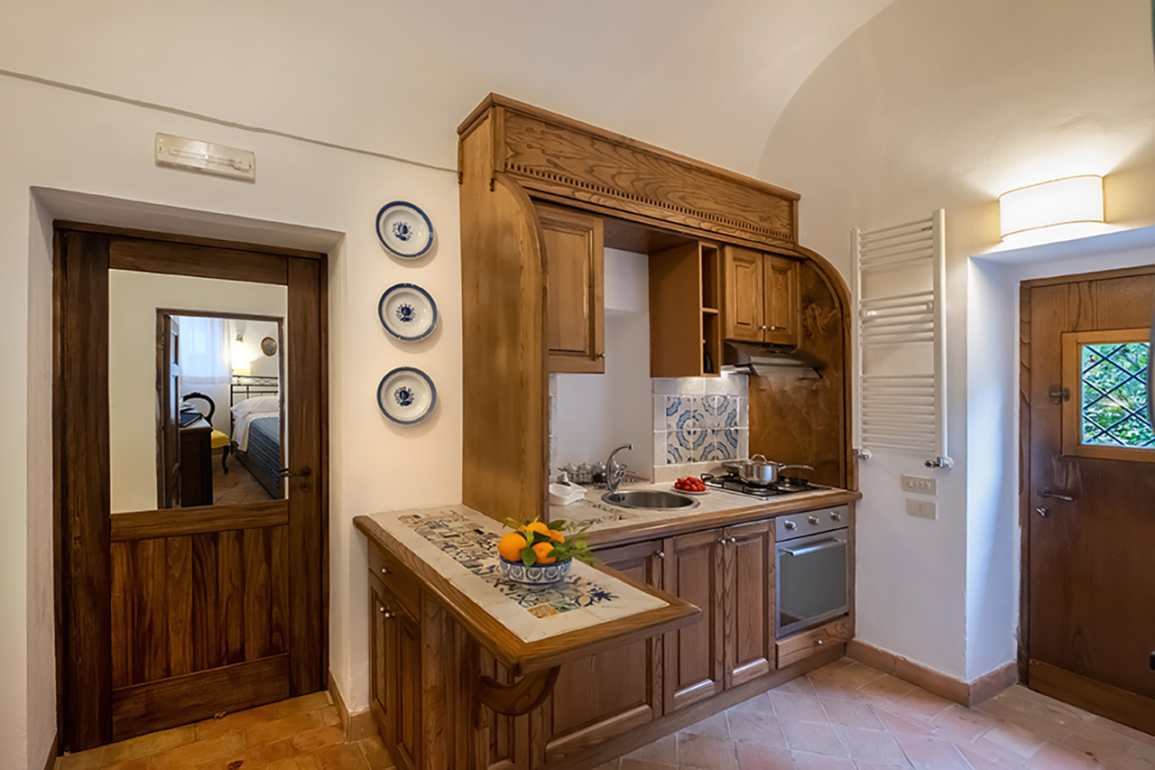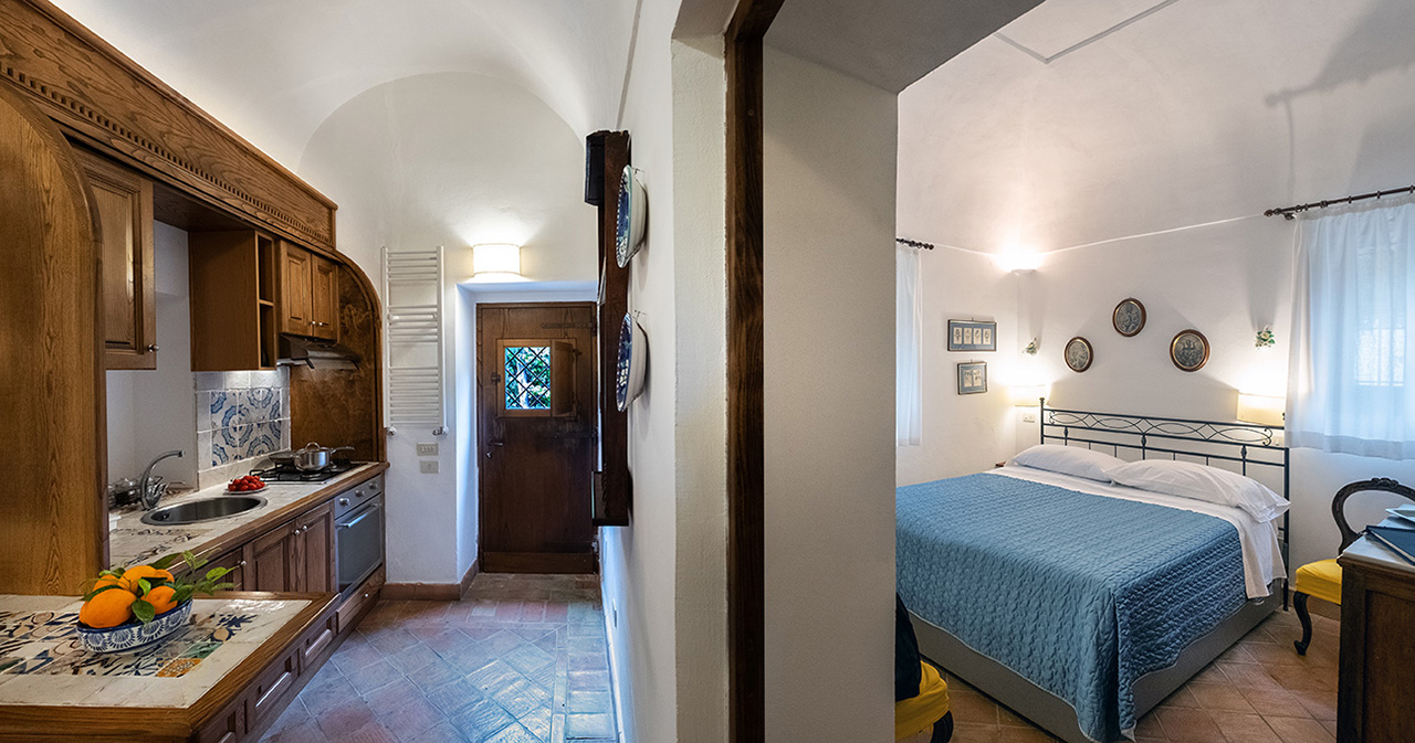 Come un anacoretaUn tempo rifugio di eremiti queste piccole abitazioni indipendenti, si componevano di camera da letto, legnaia, oratorio e un corridoio di collegamento. Oggi troverai – dopo un attento restauro – due appartamenti, ognuno con due camere da letto matrimoniali, ciascuna con il proprio bagno e un grazioso angolo cucina. All’esterno uno spazio attrezzato riservato.