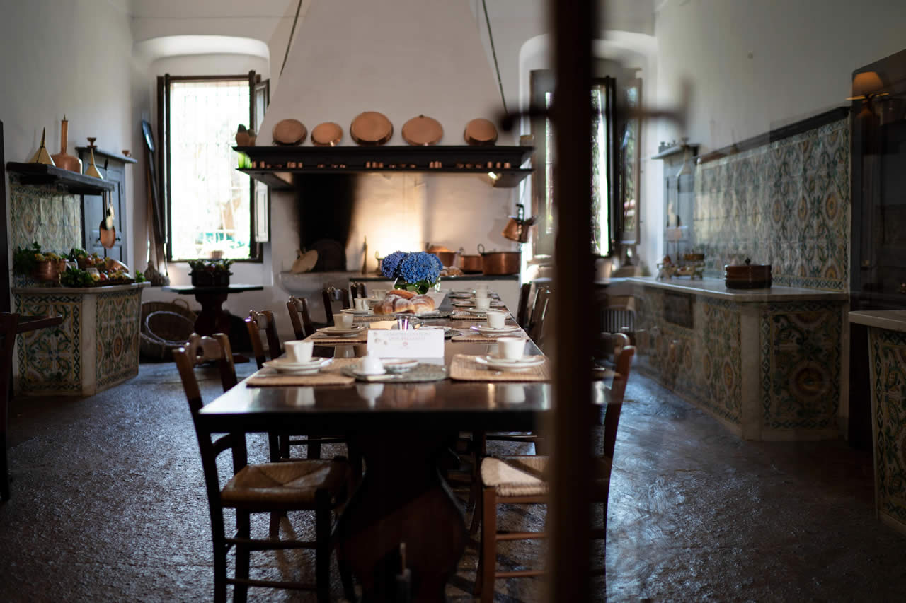 La cucina risale al XVII secolo opera dei monaci camaldolesi. Qui, tra le ceramiche luminose, il calore del fuoco e il profumo dei piatti appena preparati, si inizia la giornata con una colazione a buffet. Nelle sere più fredde, ci si ritrova per la cena, in un’atmosfera raccolta e familiare.