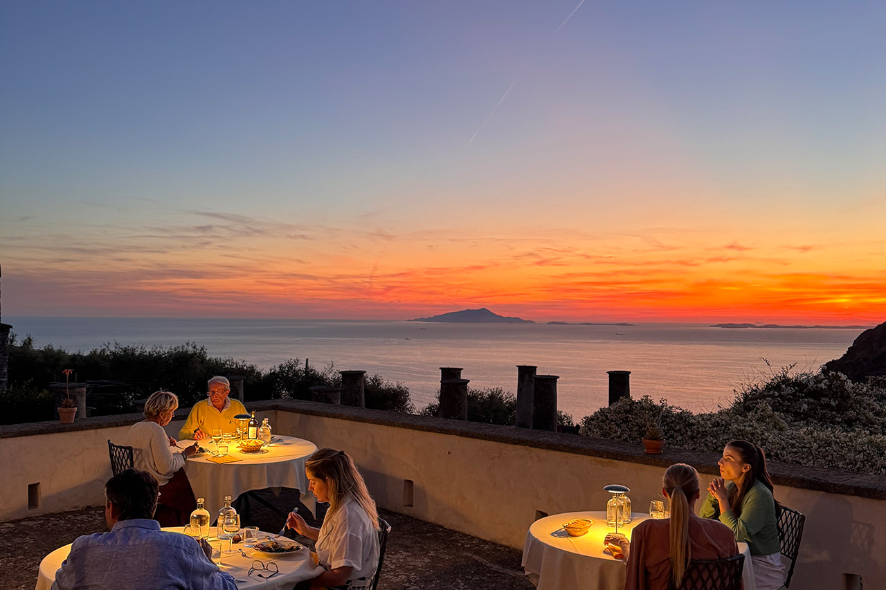 Al tramonto d’estate, la cena si sposta qui, sotto il cielo che si tinge d’oro, tra il verde che sfuma nell’orizzonte. Questo luogo suggestivo è stato scelto da Paolo Sorrentino, regista vincitore di premi Oscar e Golden Globe, come set cinematografico per il film È stata la mano di Dio, testimoniando la sua atmosfera unica e la sua bellezza senza tempo.